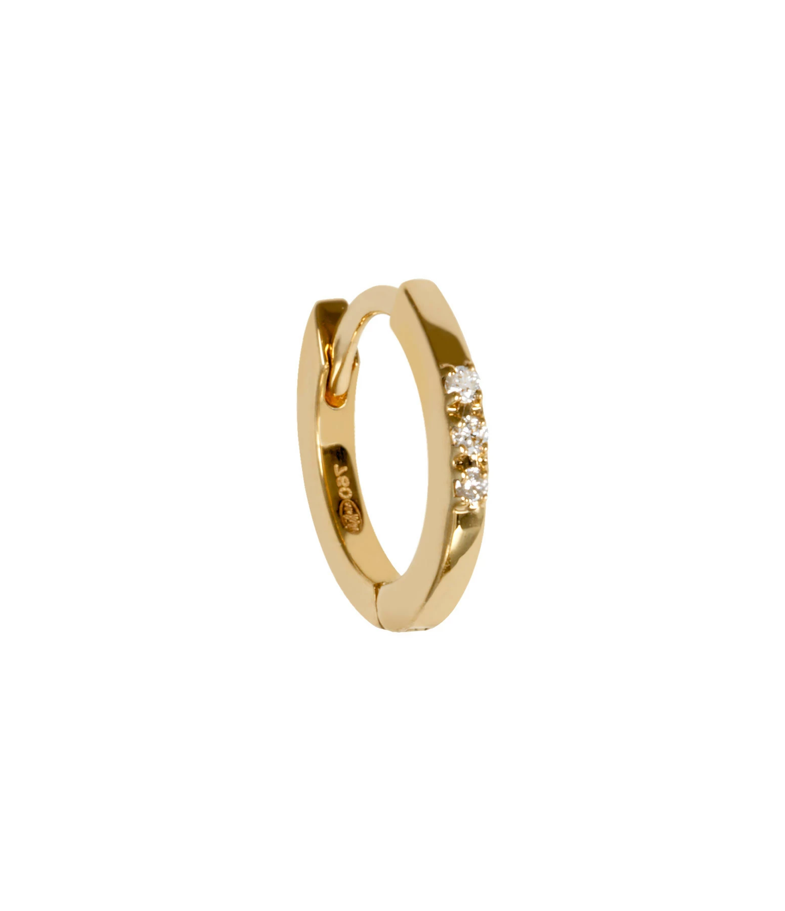 Mini créole en or jaune sertie de trois diamants blancs. Fermoir cliquet.