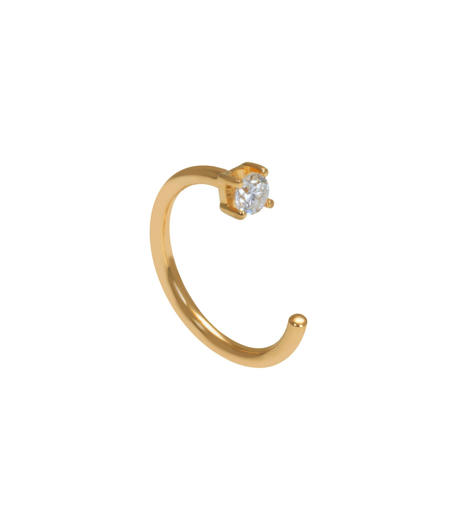 Boucle d’oreille demi-créole en or jaune sertie d’un diamant.