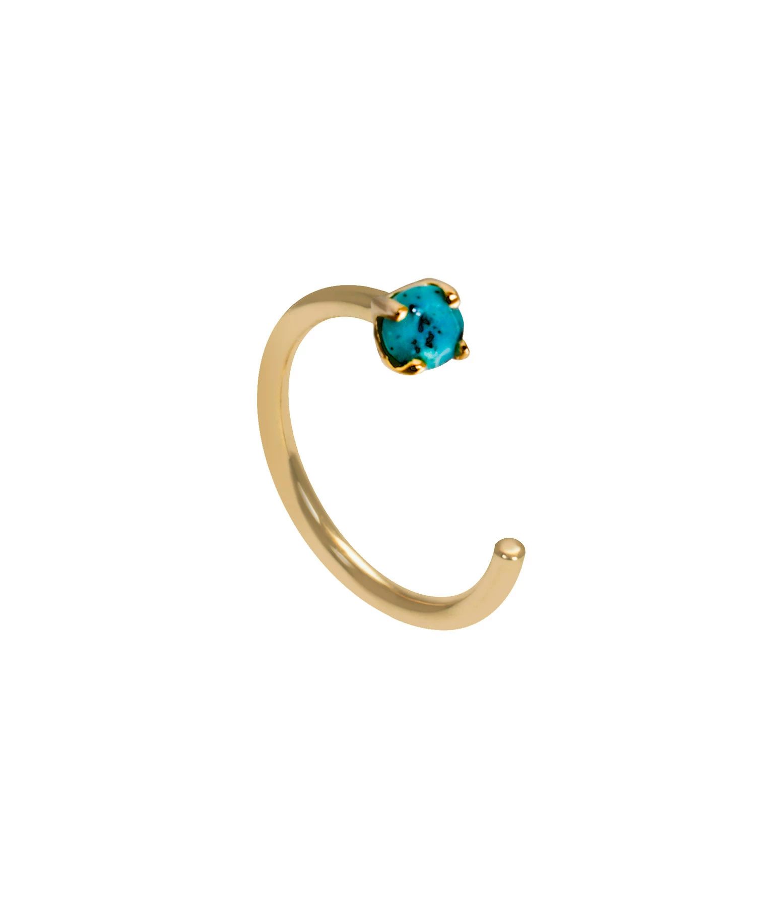 Boucle d’oreille demi-créole en or jaune sertie d’une turquoise.