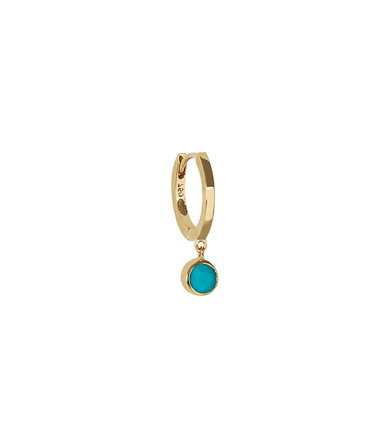 Créole en or jaune 18 carats orné d’une pierre turquoise. Fermoir cliquet.