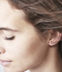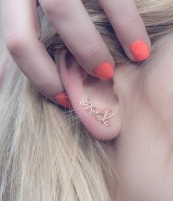 Boucle d’oreille composée d’un seul et même fil gold filled jaune, formant le mot de votre choix qui sera le reflet intime de vos émotions : un prénom, un mot… Vendue à l’unité.