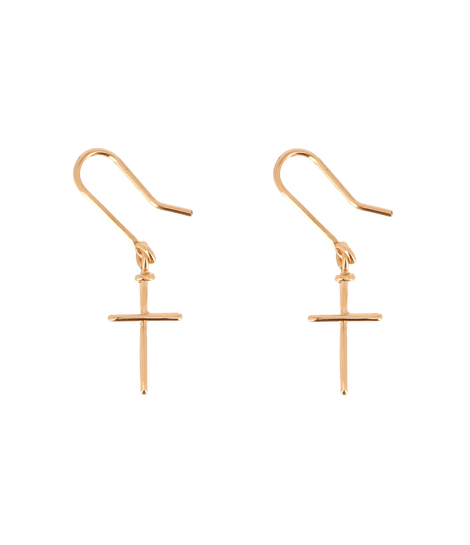 Boucles d’oreilles dormeuses en gold filled, avec petites croix. Fermoirs crochets.