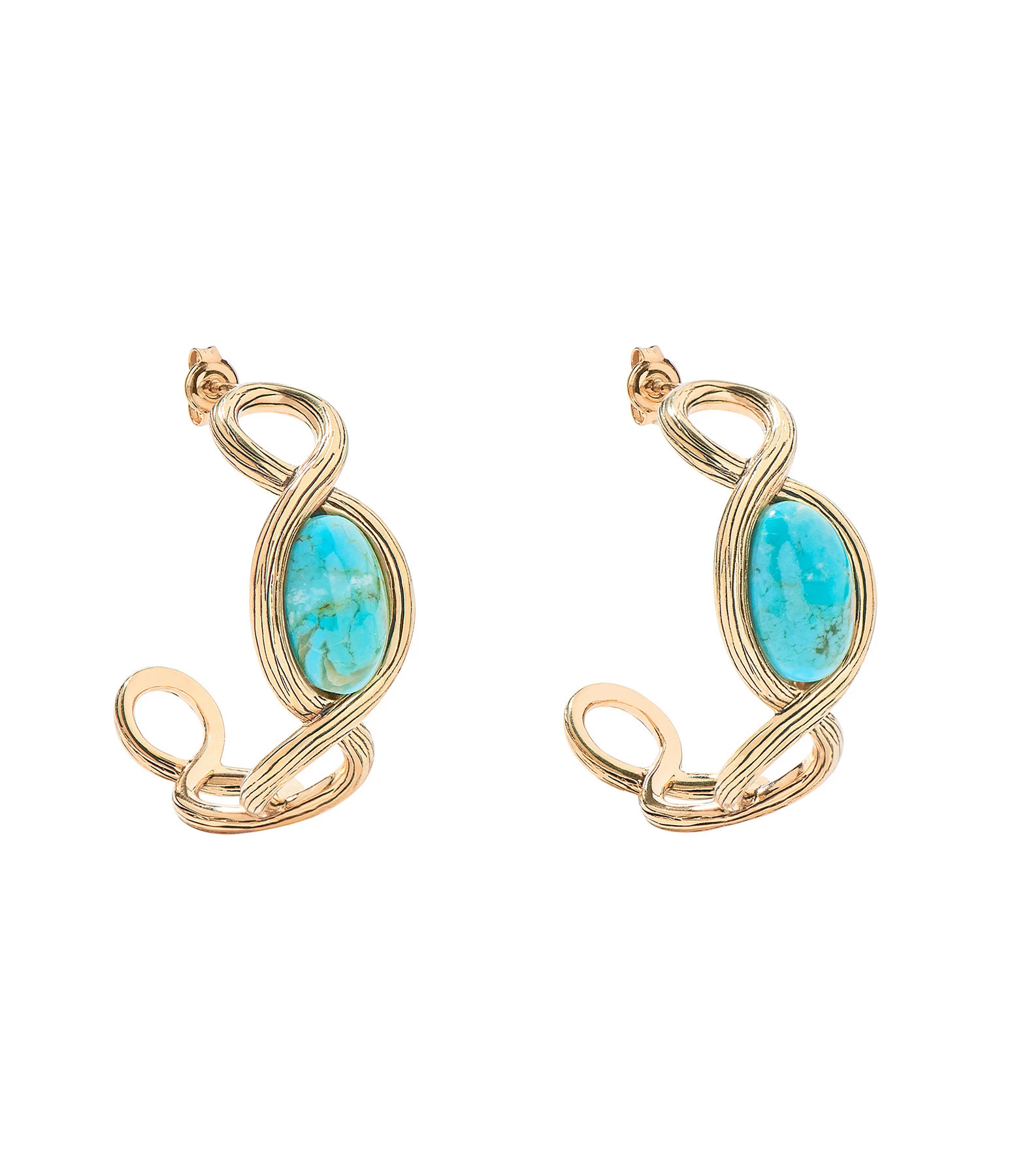 Boucles d’oreilles en laiton doré avec pierre turquoise verte. Fermoir poussette.