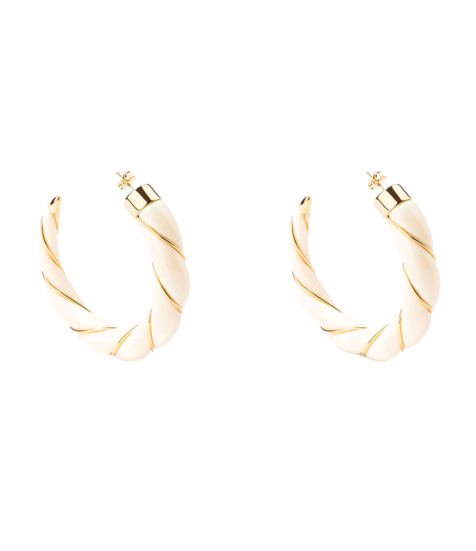 Créoles torsadées en résine ivoire, agrémentées d’un fil d’or.