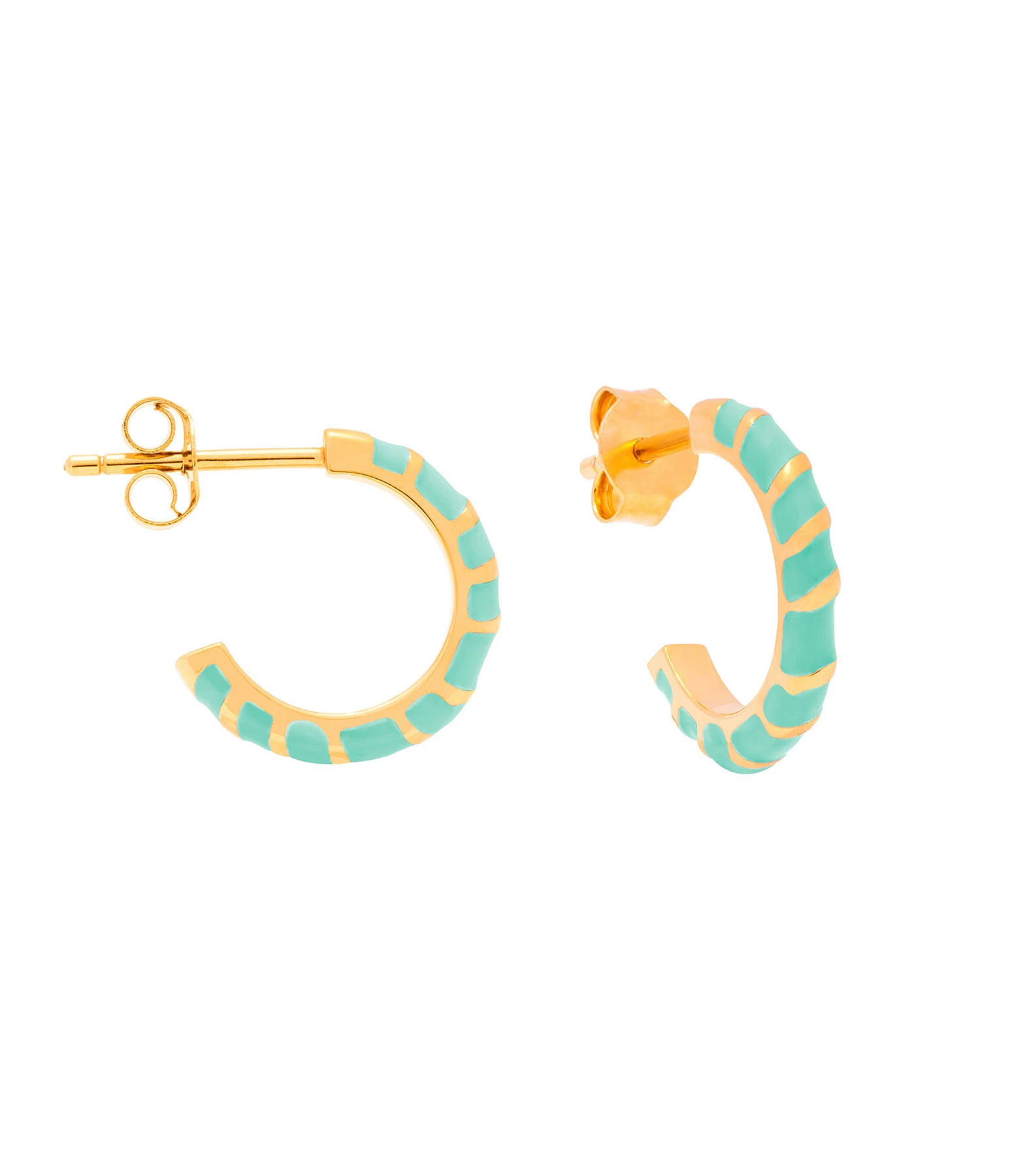 Créoles en vermeil entrelacé de laque turquoise. Fermoir poussette. Vendues à la paire.