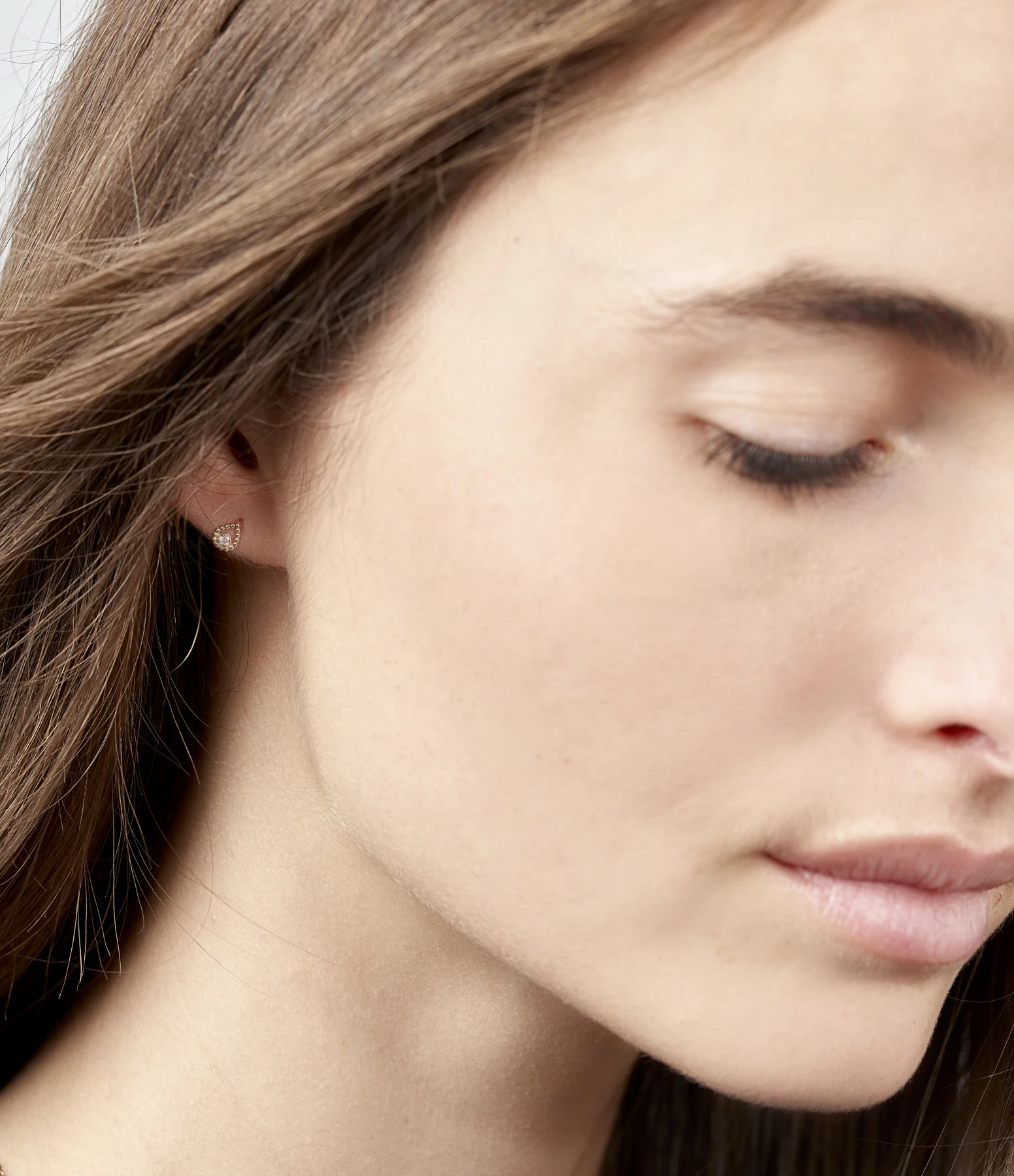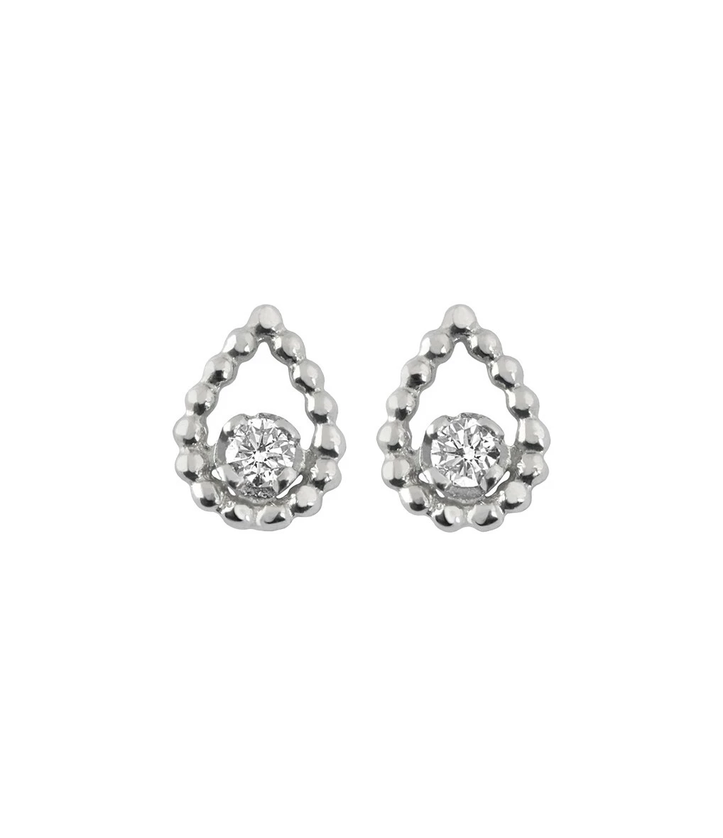 Boucles d’oreilles puces en or rose, jaune ou gris, modèle “poire” sertie de deux diamants blancs. Fermoir poussette.Vendues à la paire.