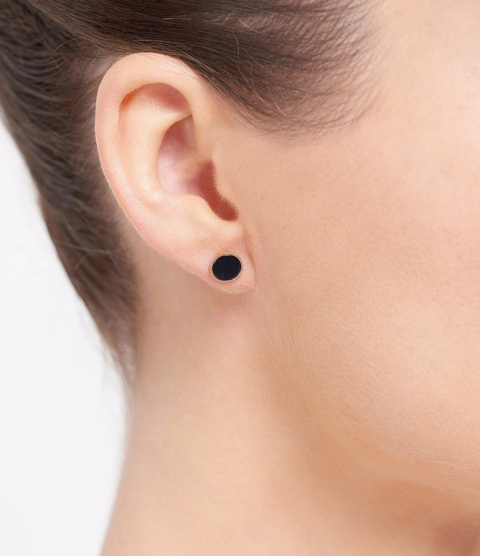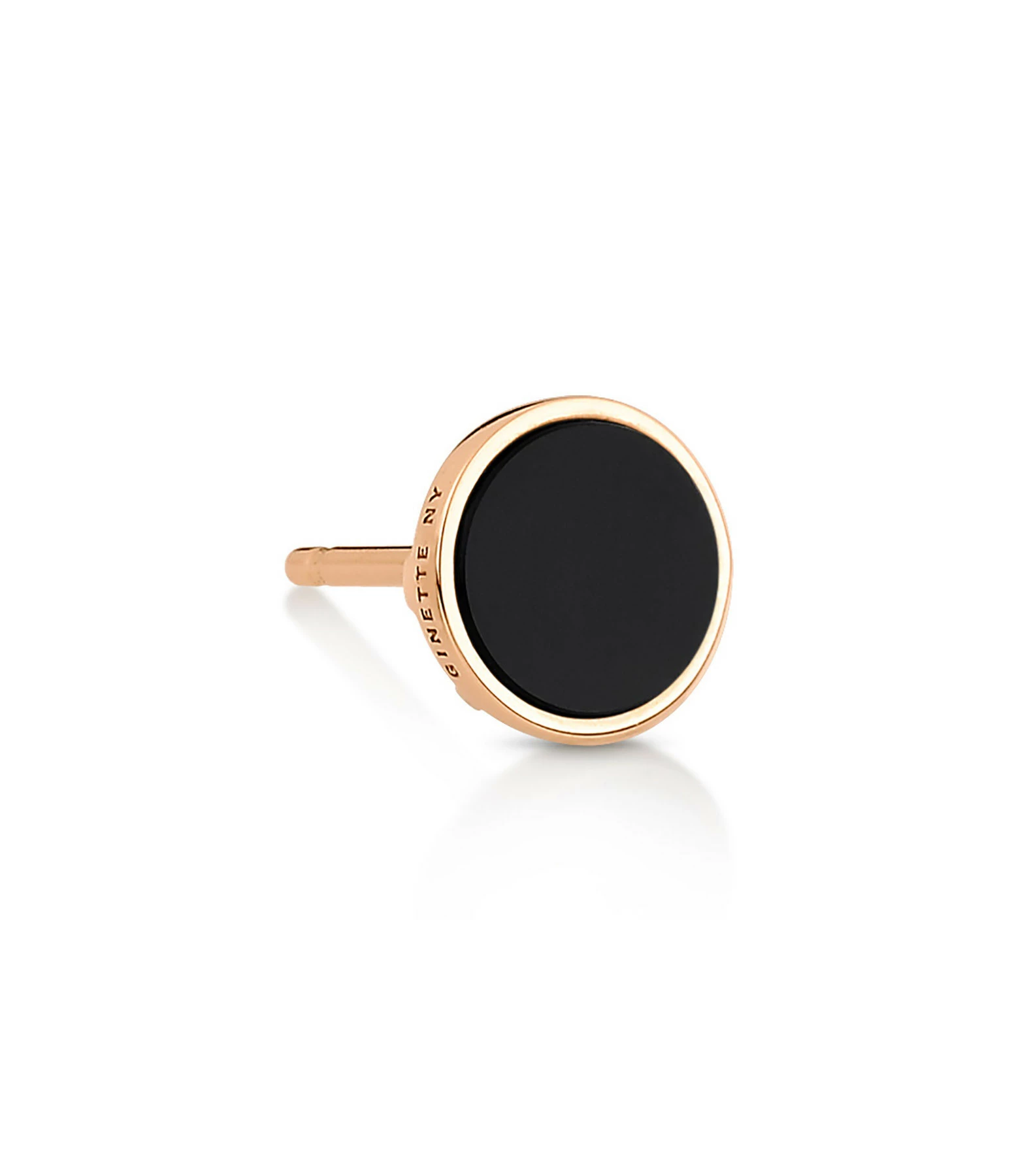 Boucle d’oreille en or rose agrémentées d’une pierre d’Onyx. Vendue à l’unité.