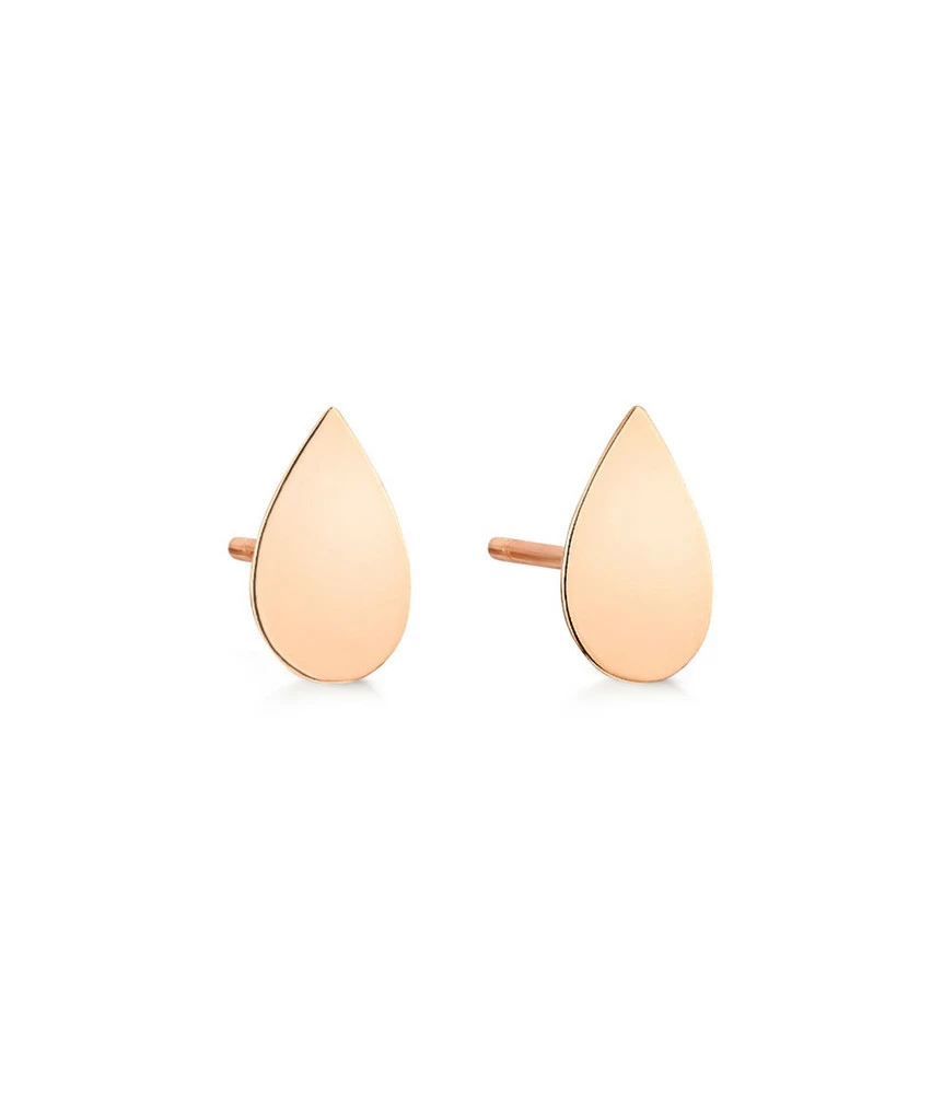 Boucles d’oreilles puces en or rose en forme de goutte. Fermoir poussette.