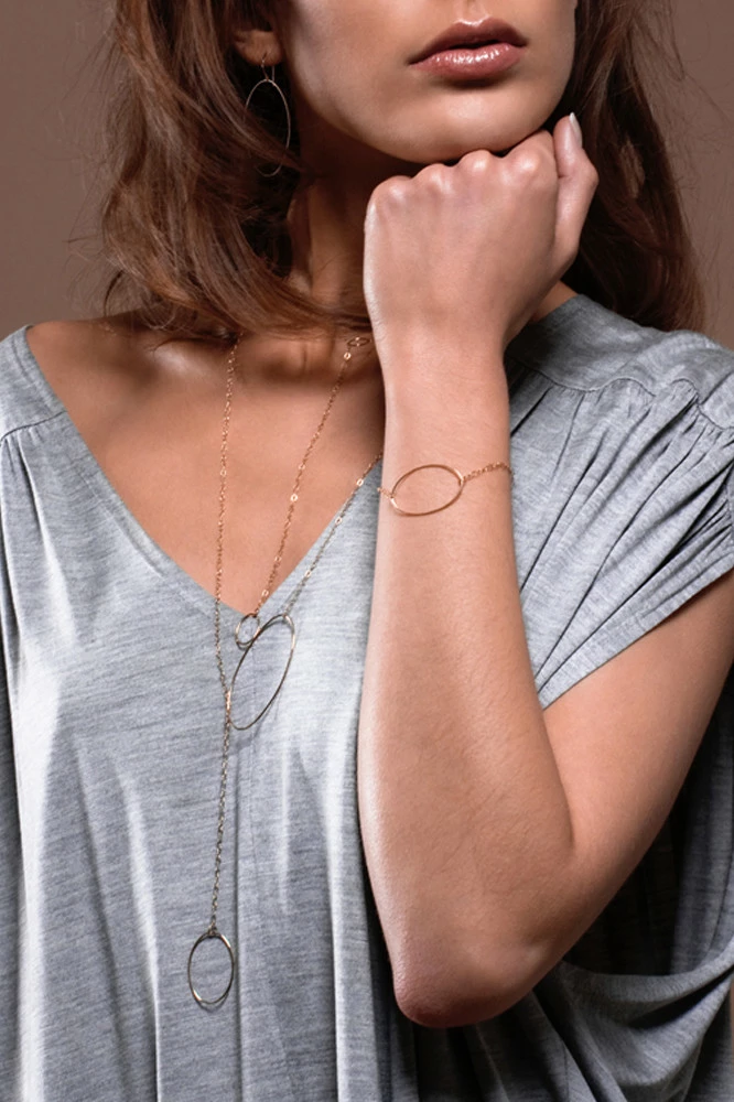 Conseil Stylistique :Ellipses et sequins est la collection qui joue avec les pleins et les vides, qui se décline en or, pierres ornementales ou diamants.