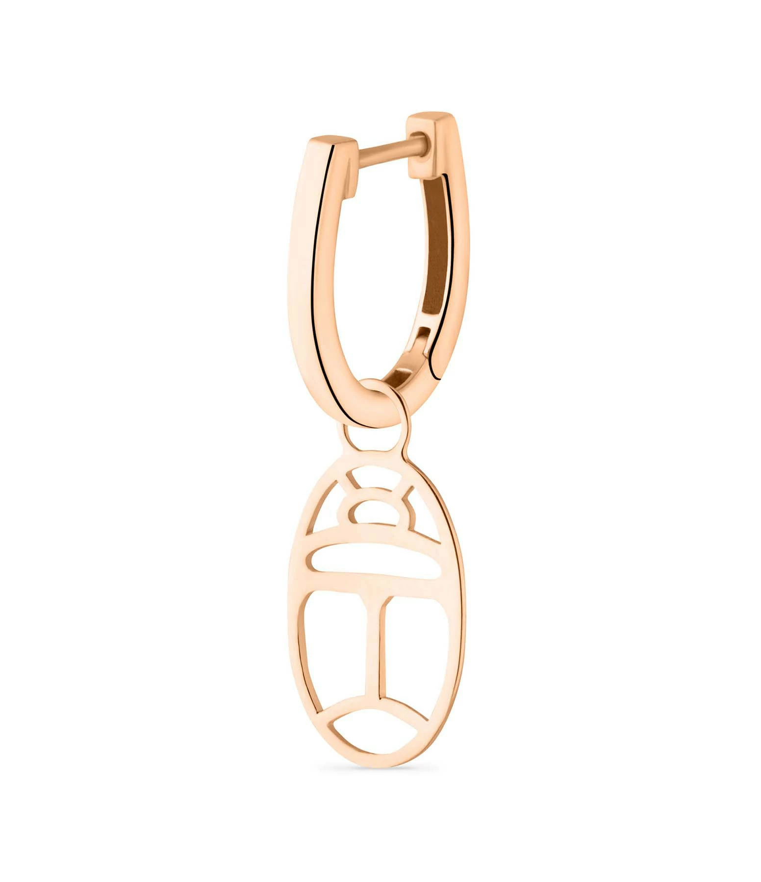 Mini créole dormeuse en or rose, avec un pendentif “wish”, un scarabée symbole d’éternité, amovible.