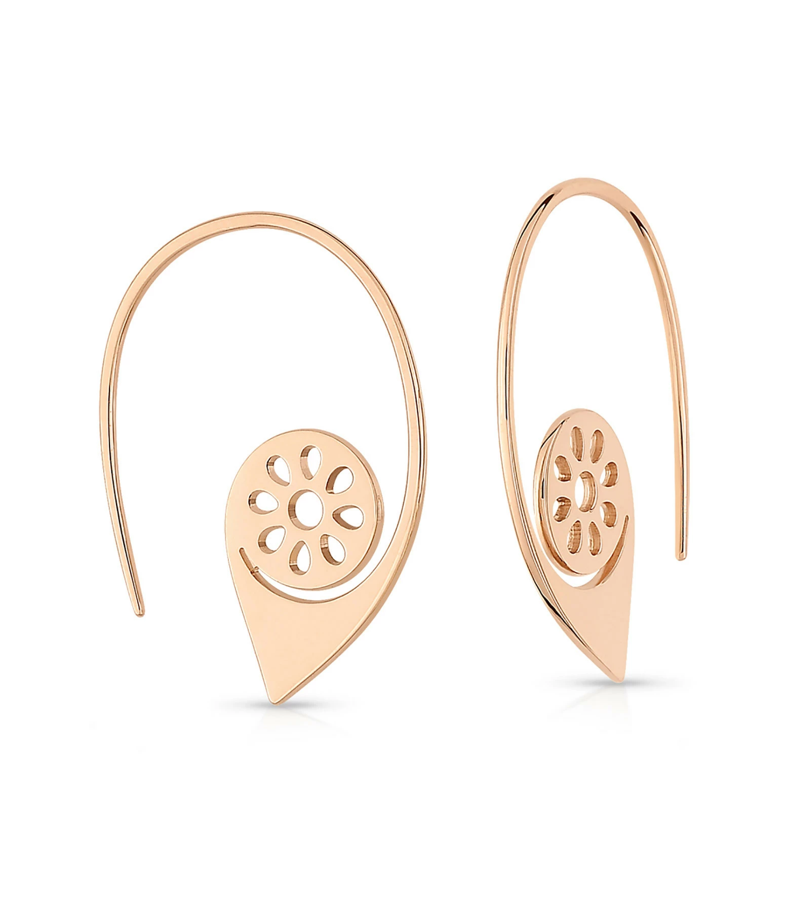 Créoles en or rose en forme d’œil. Pas de fermoir, tige à passer dans le lobe. Vendue à la paire.