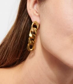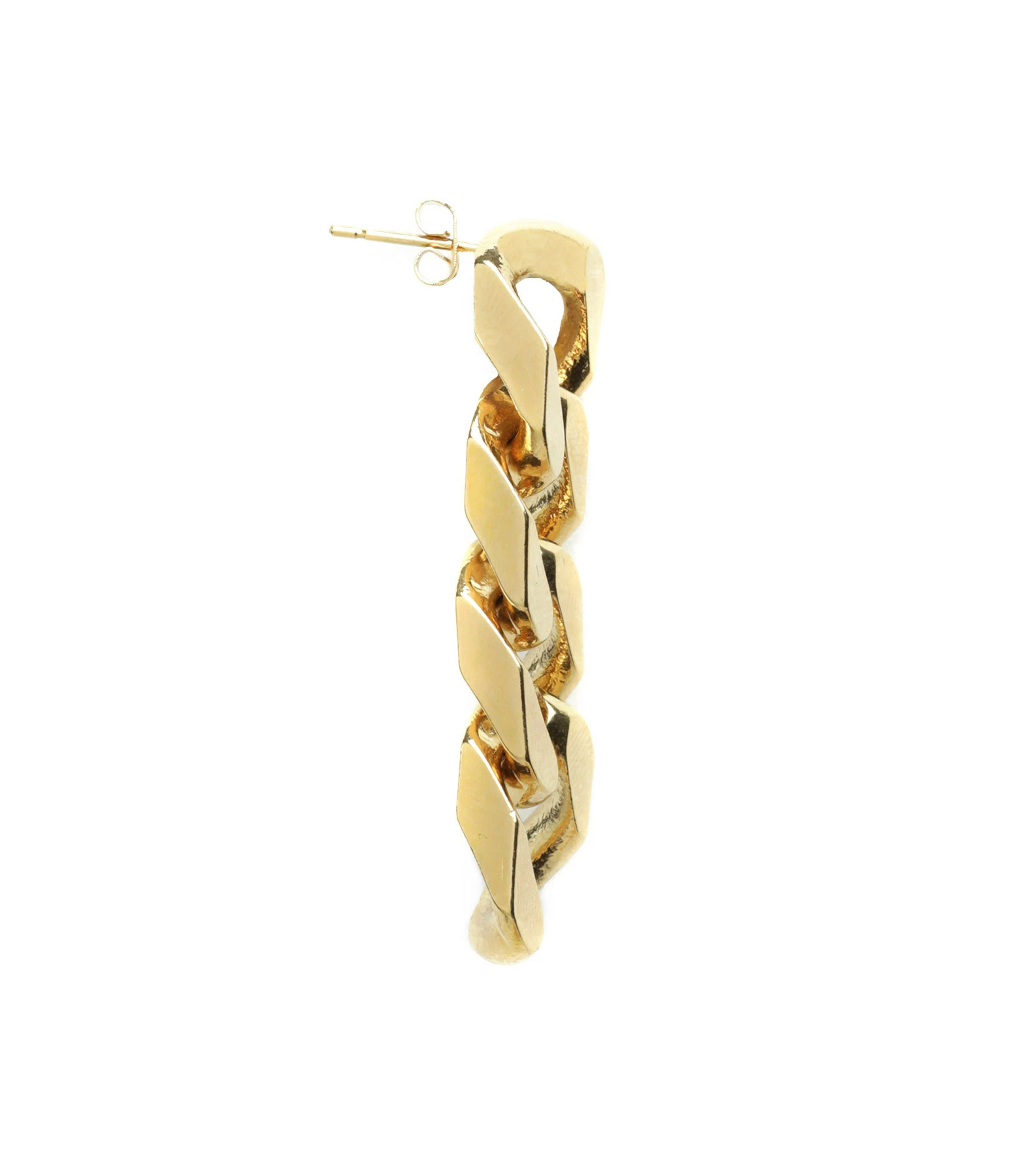 Boucle d’oreille plaquée or, en maille gourmette. Fermoir poussette.