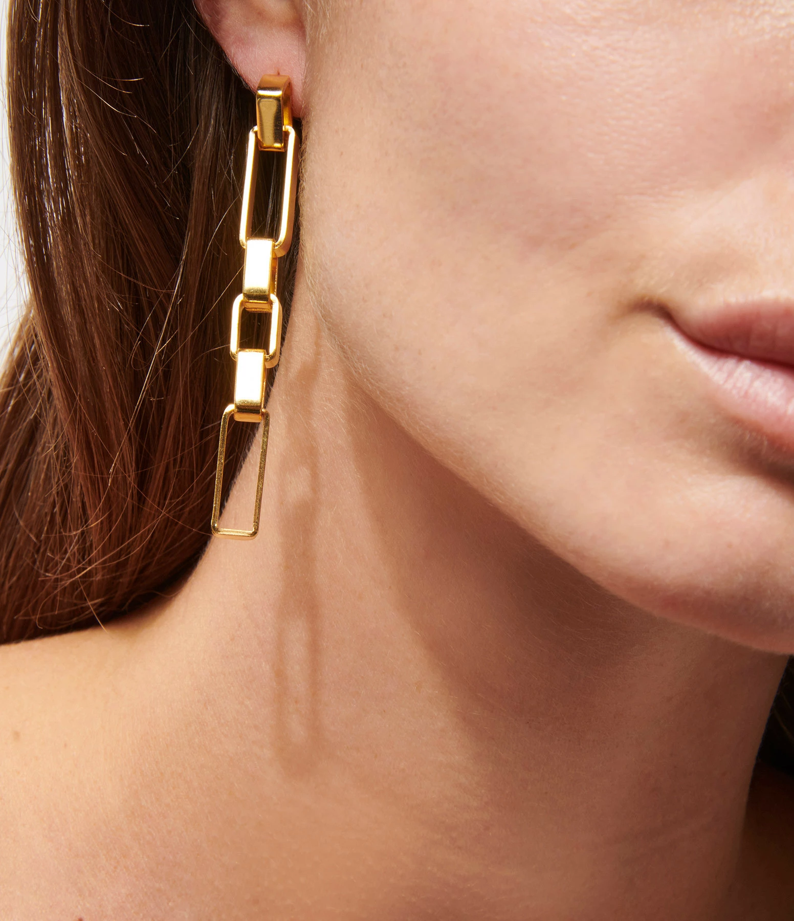 Boucle d’oreille plaquée or en maille rectangulaire. Fermoir poussette.