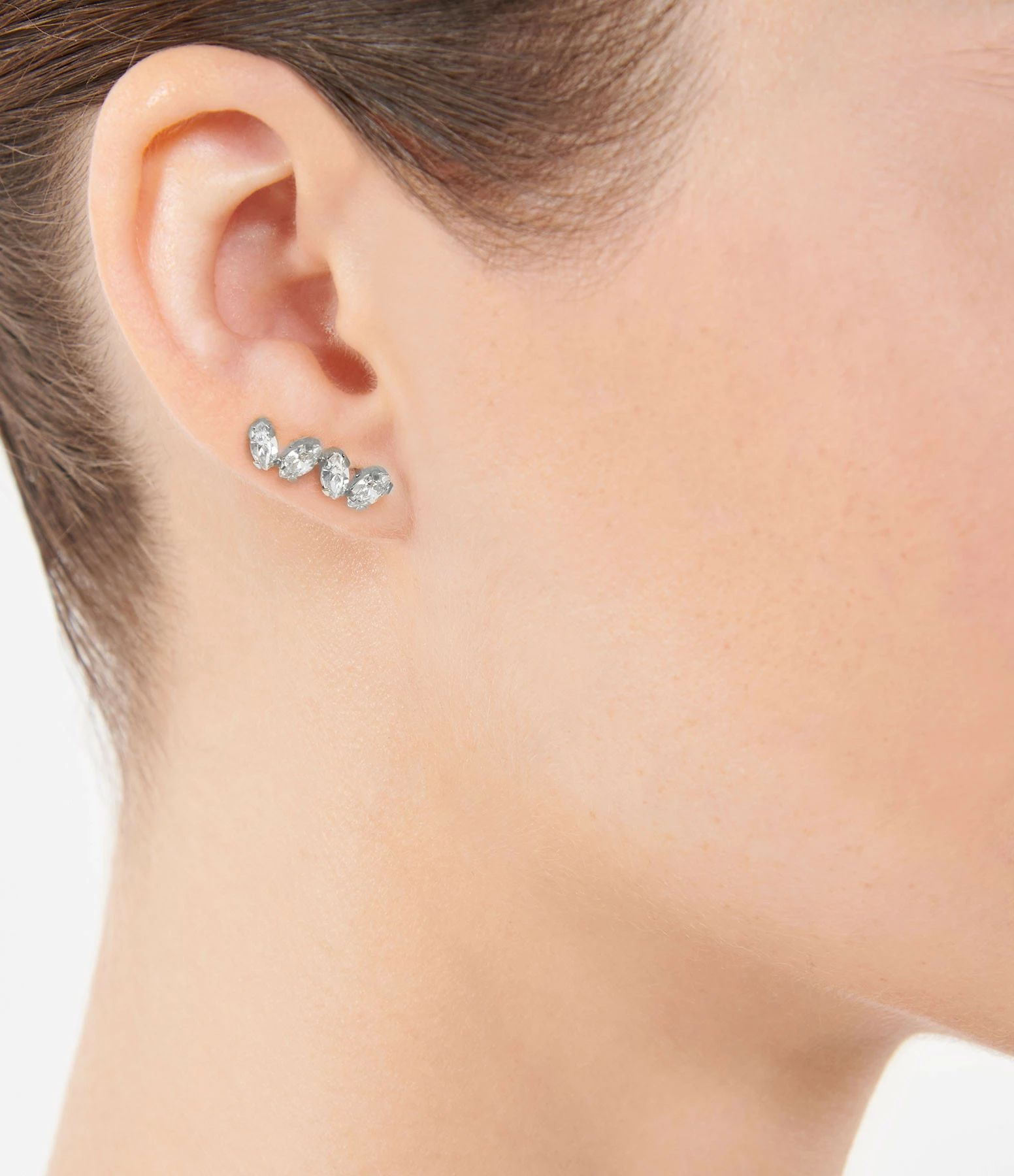 Earcuff en laiton argenté ornée de quatre cristaux Swarovski®. Sans fermoir.