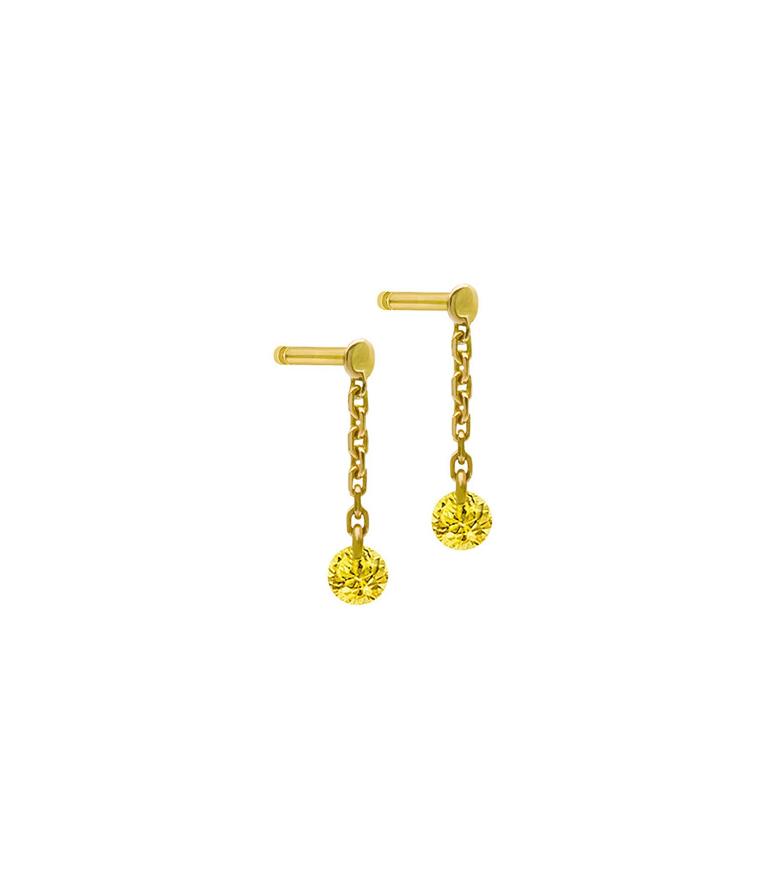Boucles d’oreilles en or jaune, une chaîne facettée agrémentée d’un saphir jaune. Fermoir Alpa sécurisé.