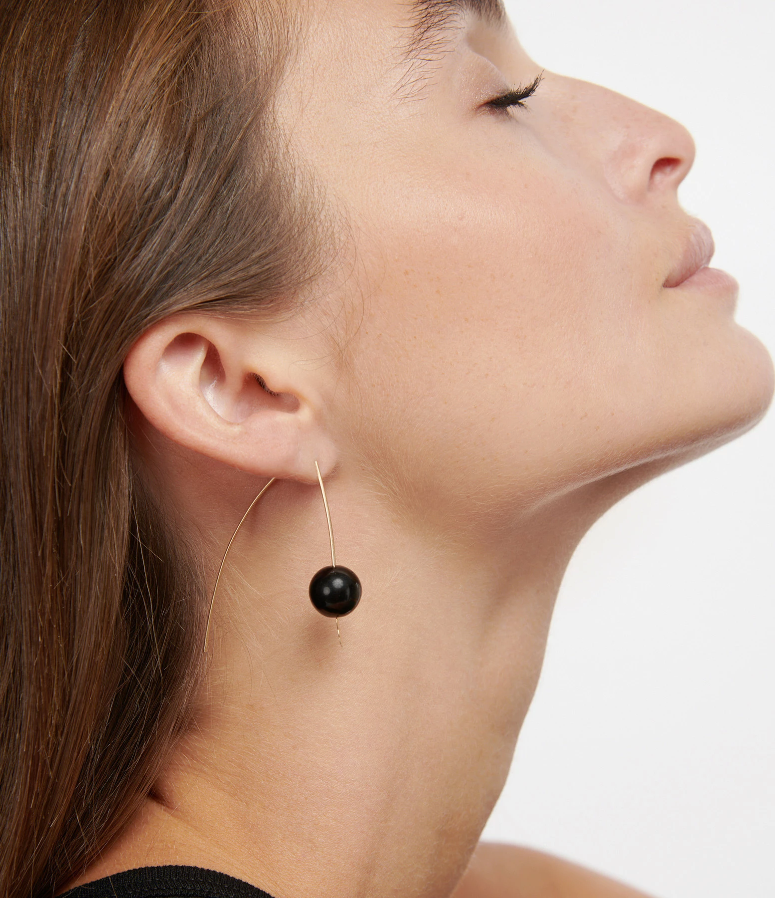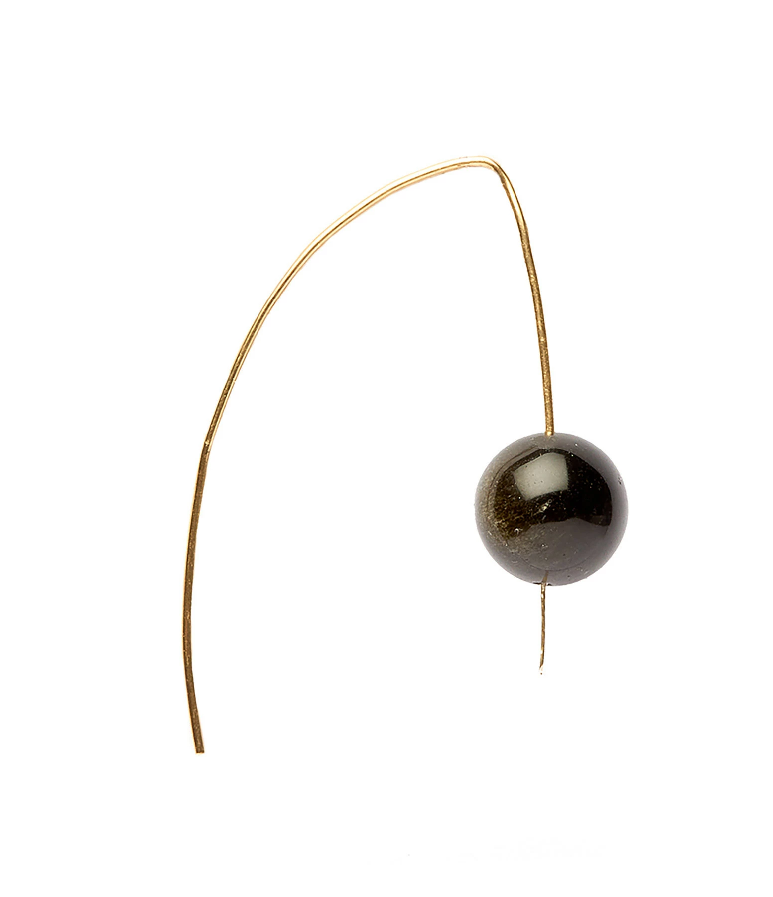 Mono boucle d’oreille tige à enfiler en argent doré à l’or fin avec une pierre d’obsidienne. Fermoir poussette. Vendue à l’unité.