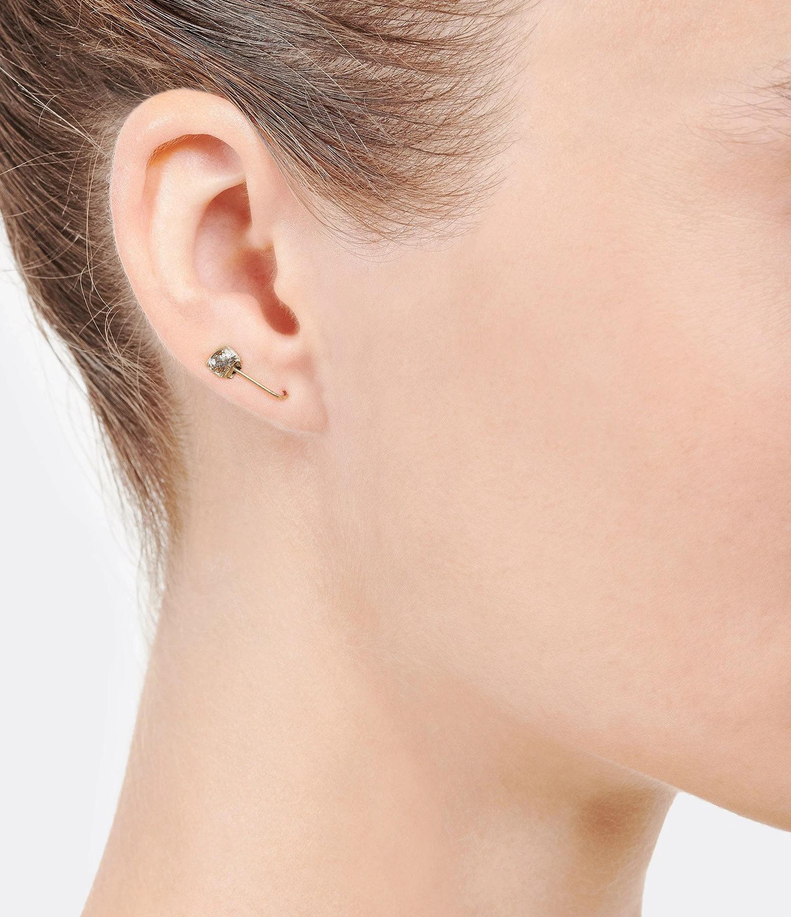 Boucle d’oreille en or 9 carats, avec pépite martelée sertie d’émail diamanté.