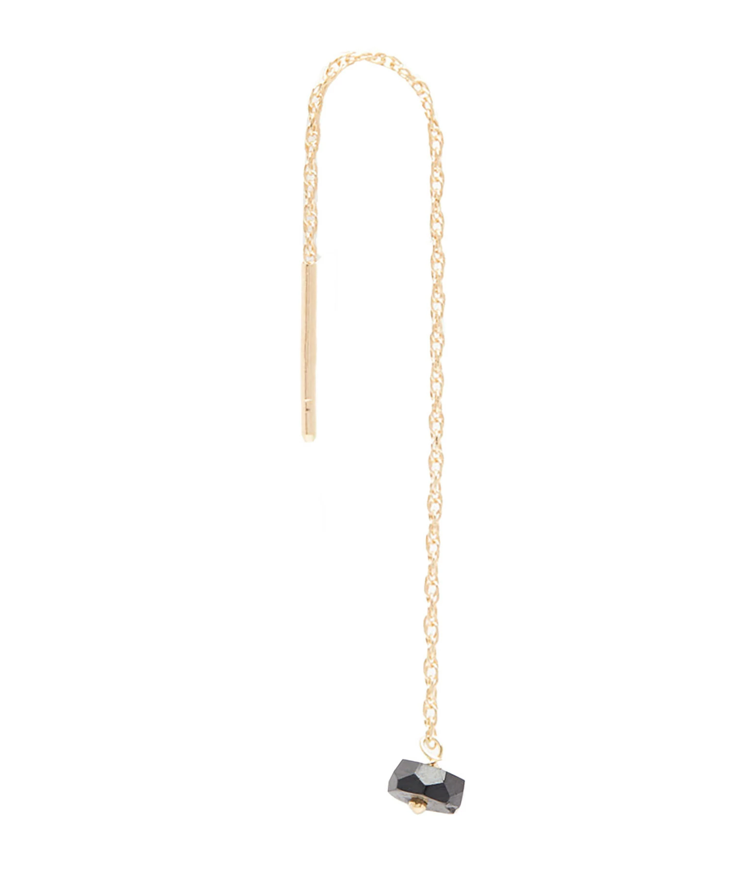 Boucle d’oreille pendante en chaîne en Gold Filled sertie d’une pierre en onyx. Vendue à l’unité.