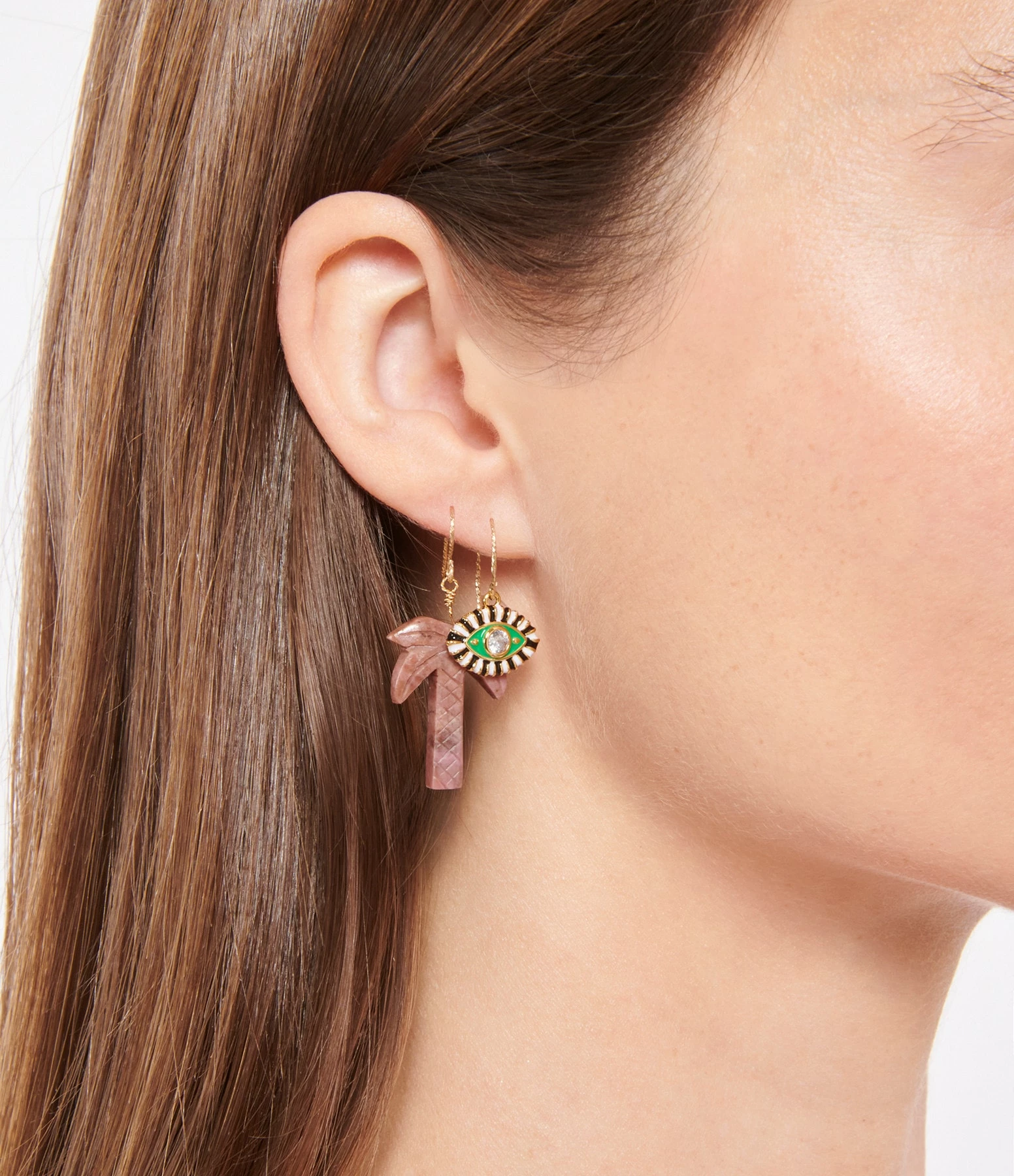 Boucle d’oreille en gold filled avec œil en émail coloré. Attache crochet.