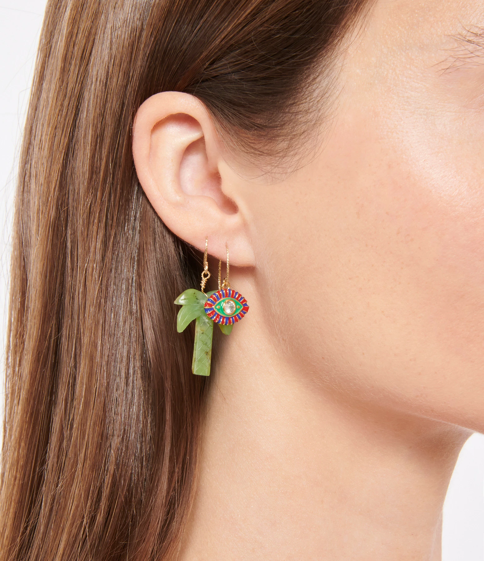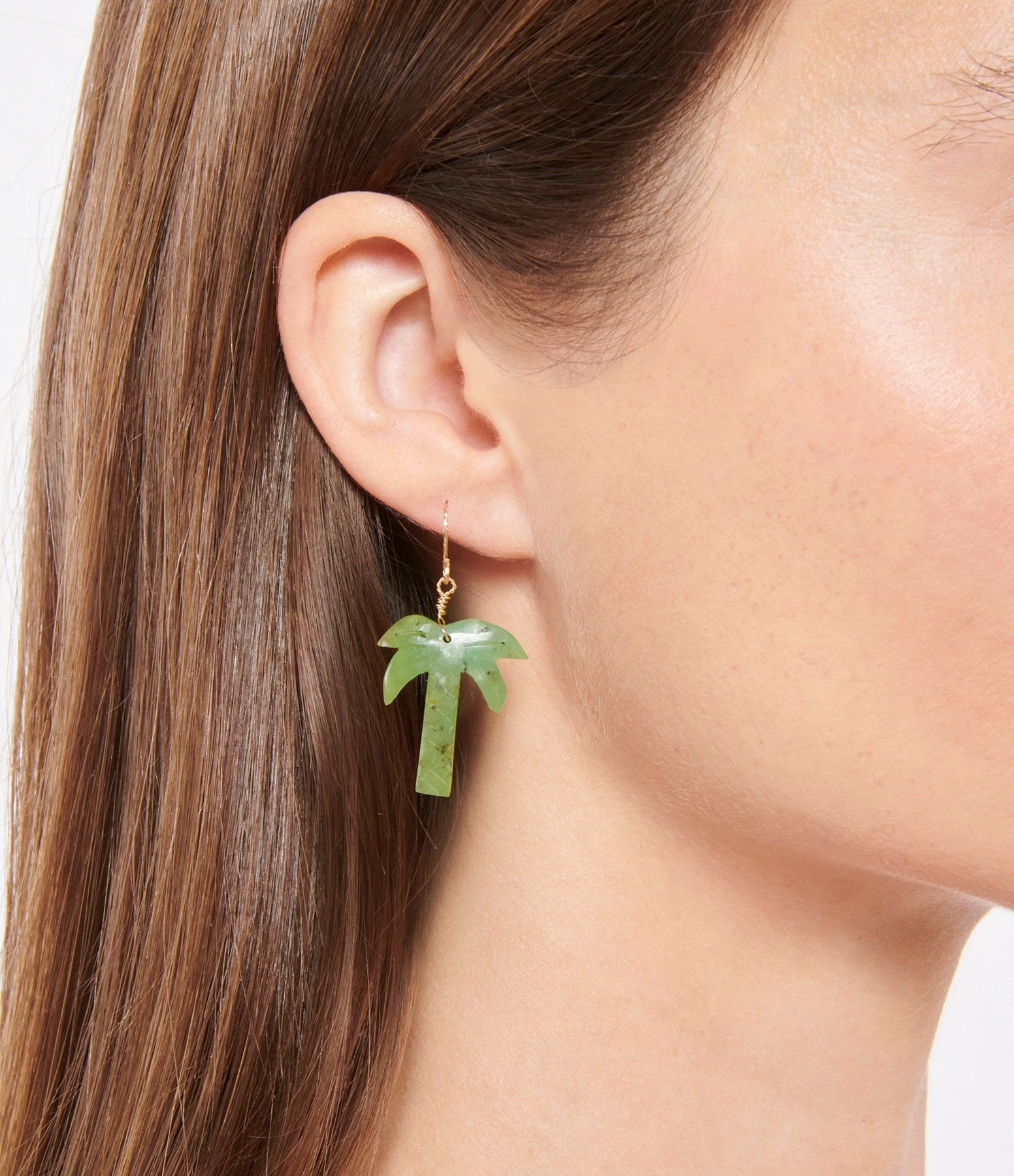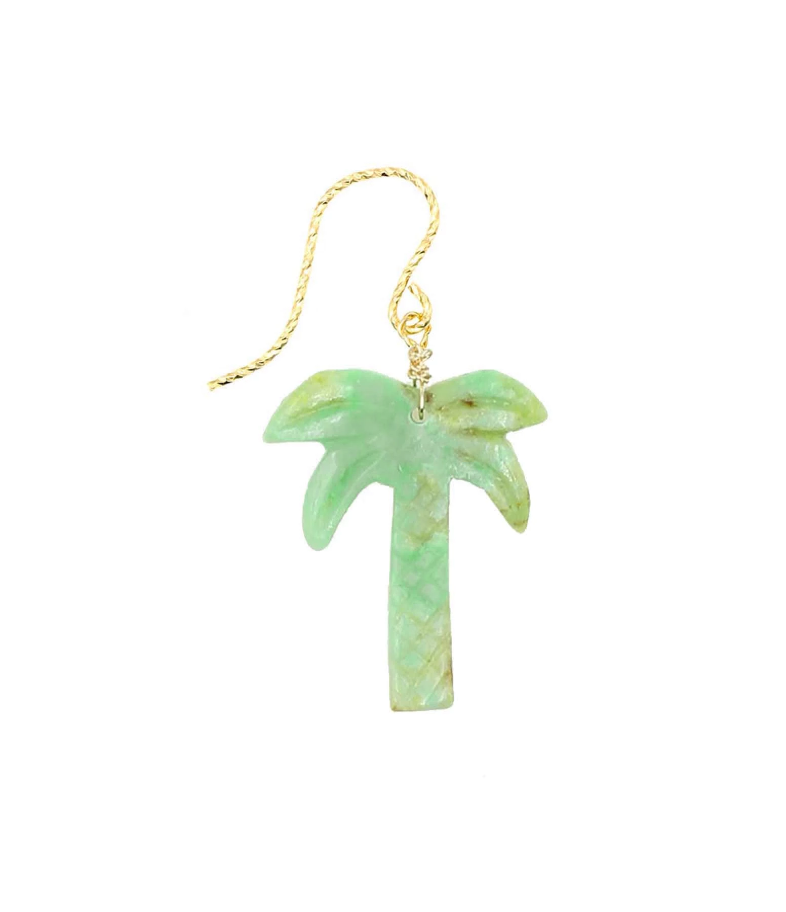 Boucle d’oreille palmier en Chrysoprase. Attache crochet en gold filled.