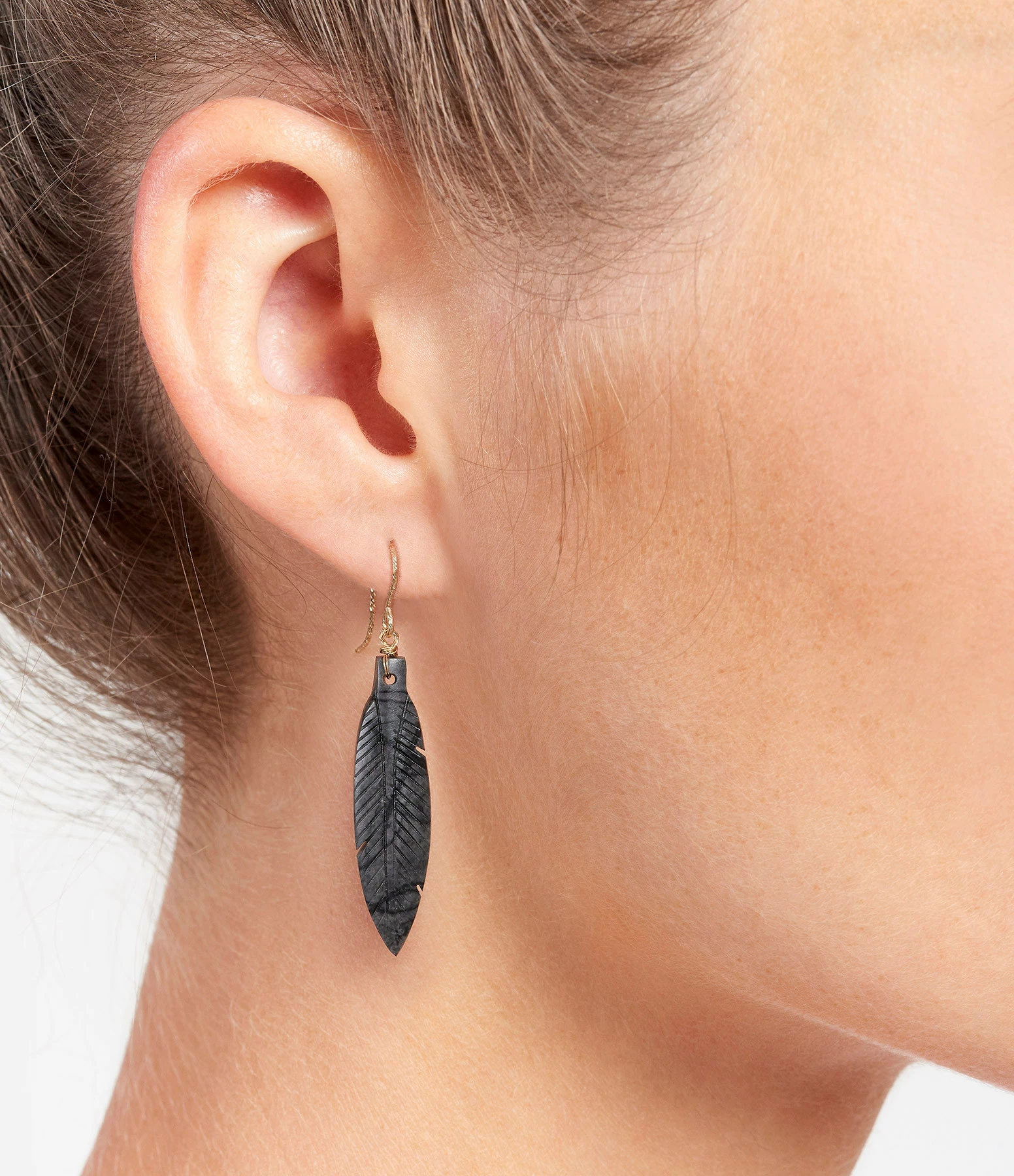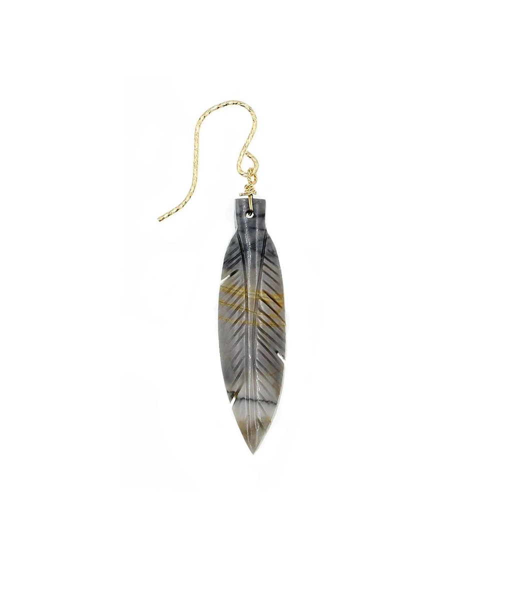 Boucle d’oreille plume en Jaspe. Attache crochet en gold filled.