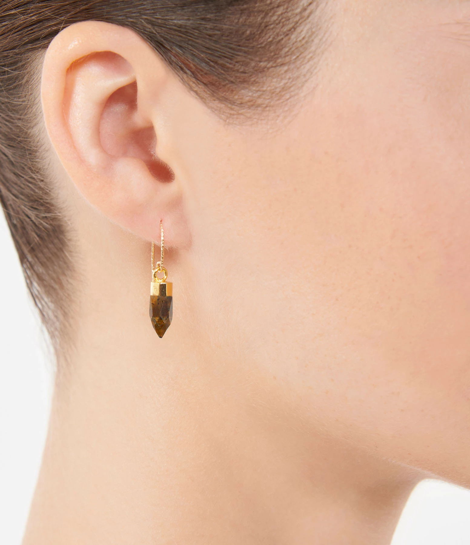 Boucle d’oreille en œil de tigre. Attache crochet en gold filled.