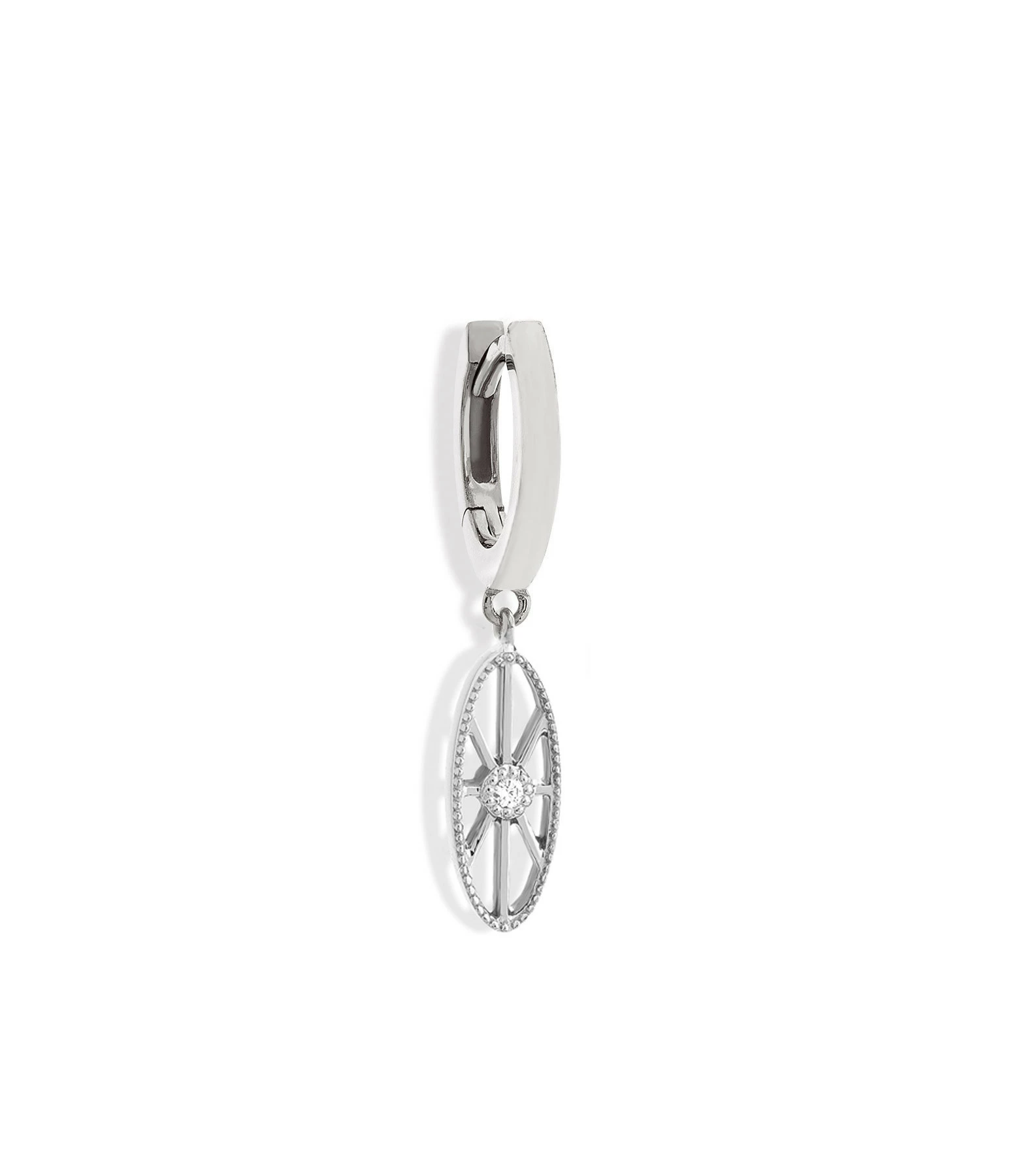 Boucle d’oreille en or blanc avec pendentif ovale serti d’un diamant rond. Fermoir à cliquet.