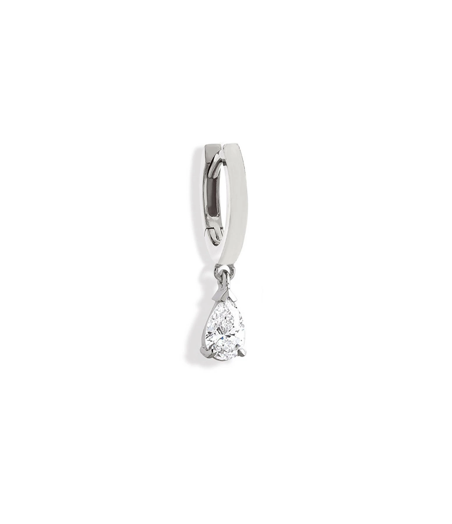 Mini créole en or blanc avec diamant taille poire. Fermoir à cliquet.
