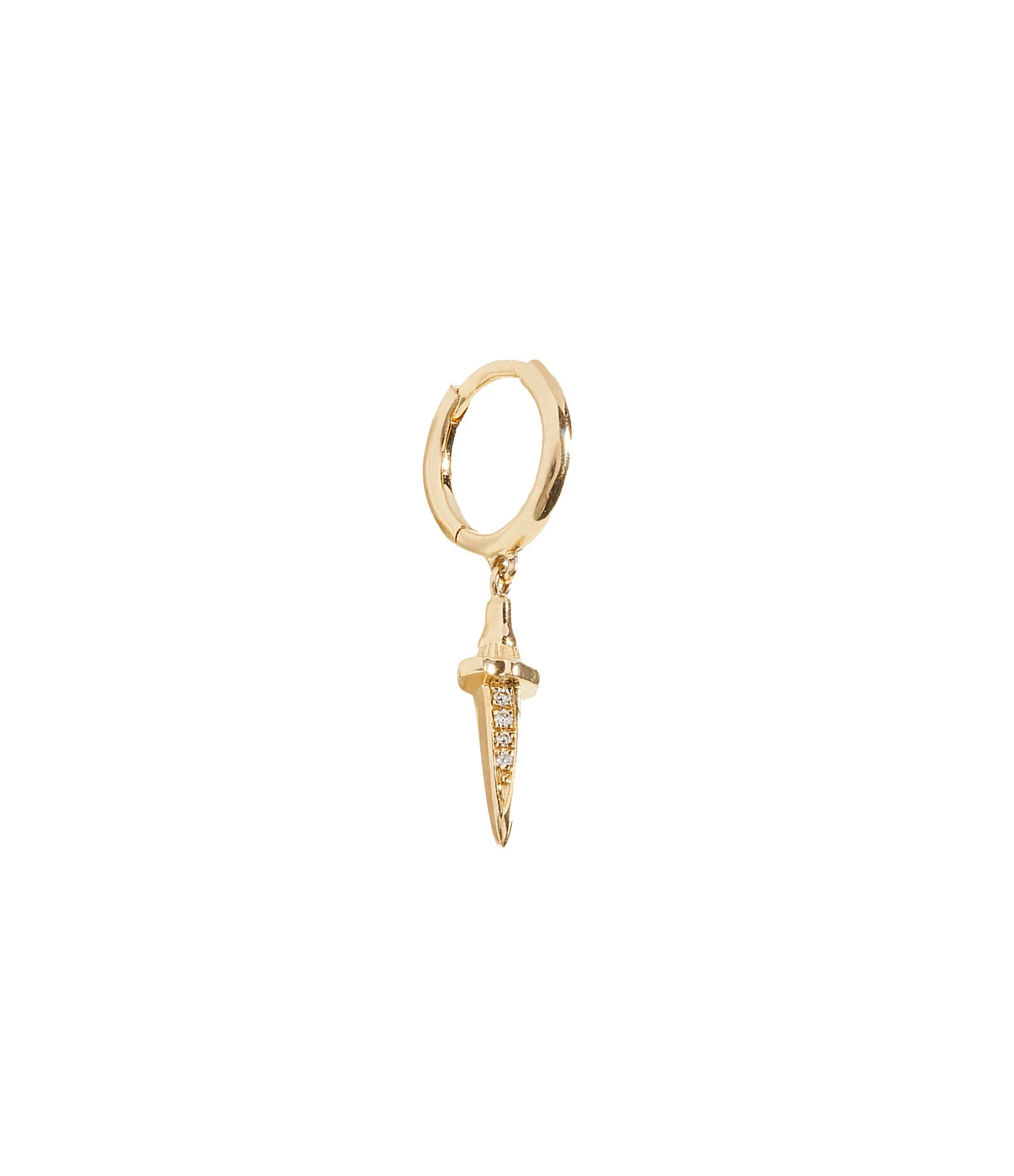 Boucle d’oreille avec mini poignard en or jaune et diamants. Vendue à l’unité.