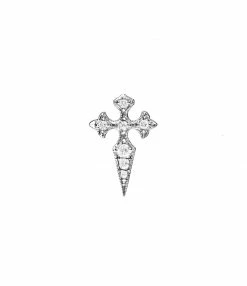 Boucle d’oreille en or jaune, rose, blanc ou noir avec croix sertie de sept diamants. Fermoir ALPA sécurisé.