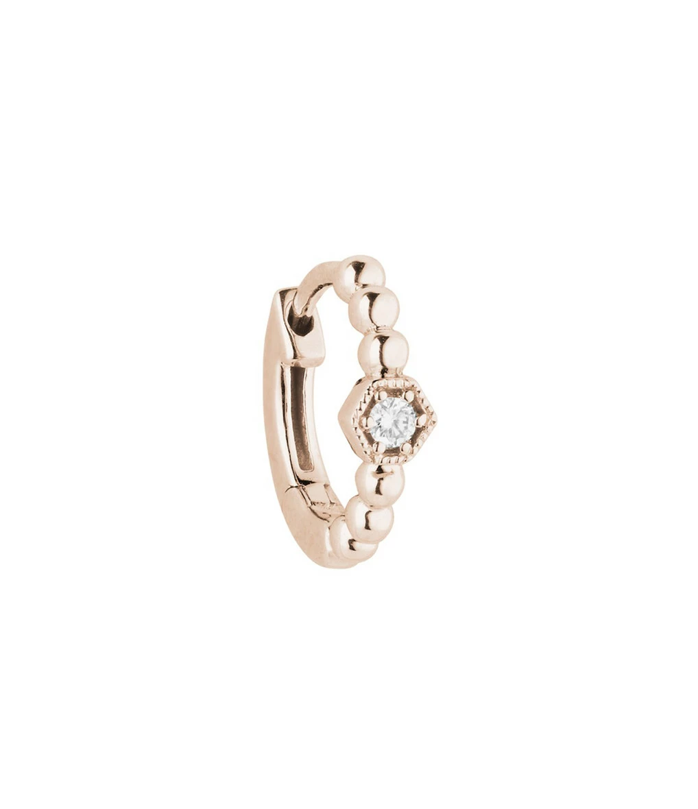 Créole en or jaune, rose, noir ou blanc serti d’un diamant.