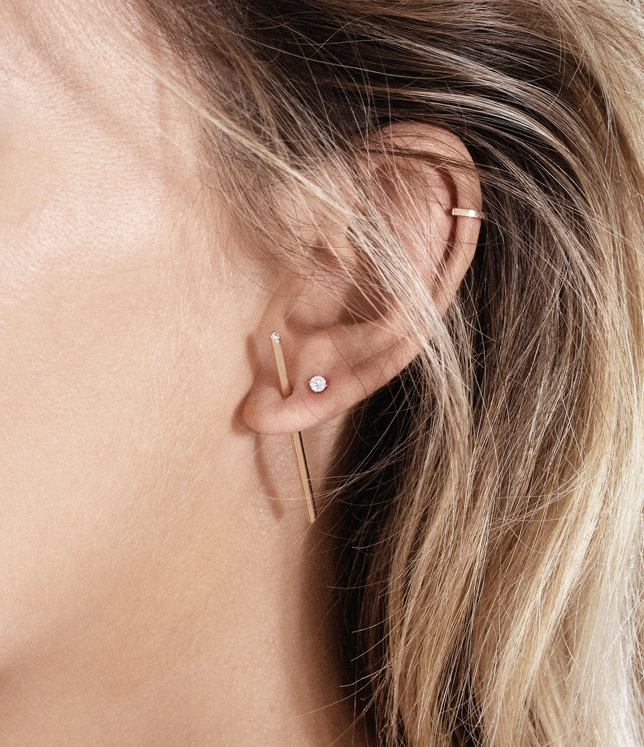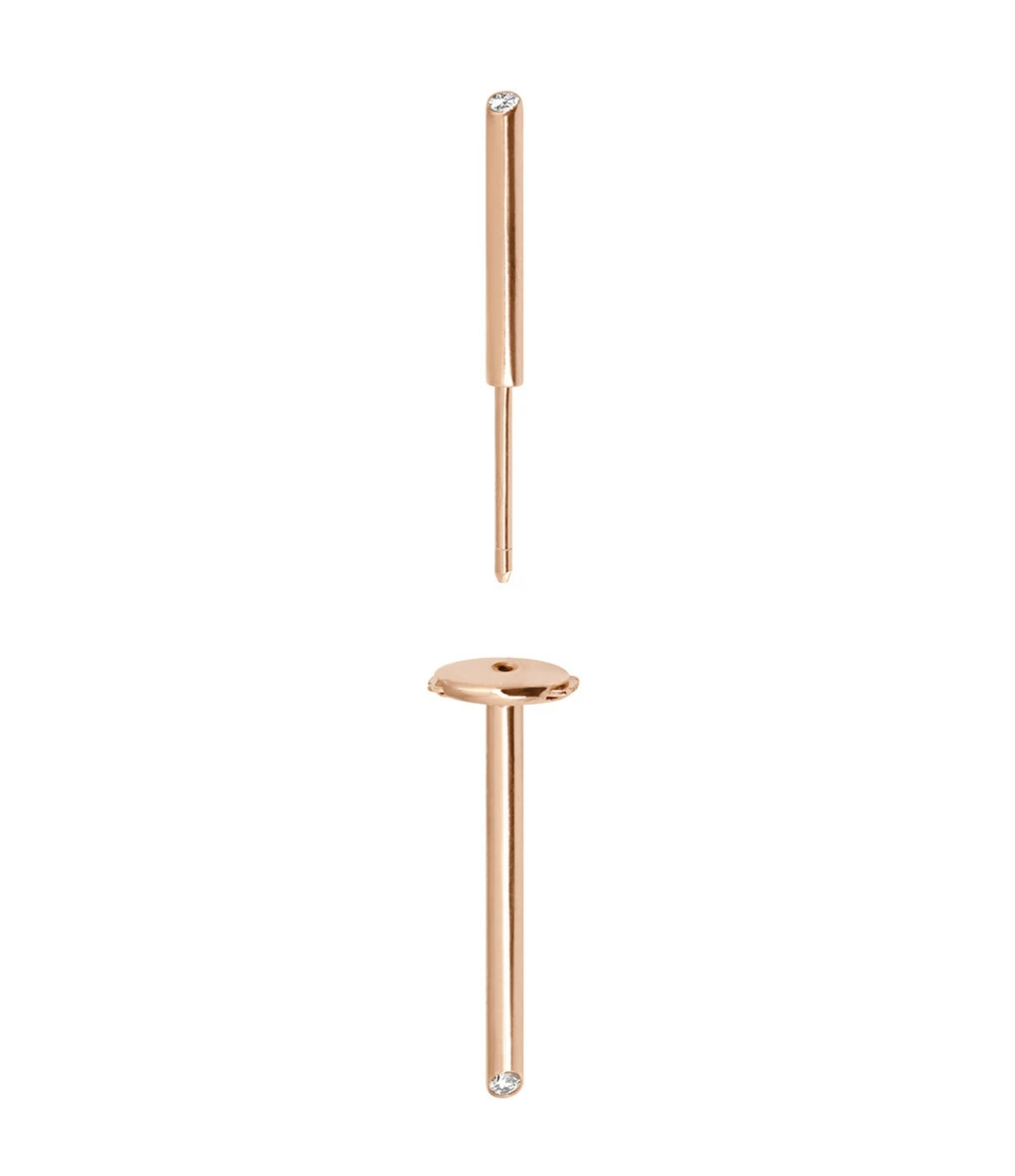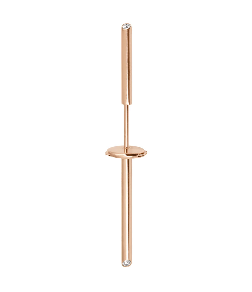 Boucle d’oreille en or rose serties d’un diamant et composées de deux barrettes dont une à placer derrière le lobe. Fermoir ALPA sécurisé.